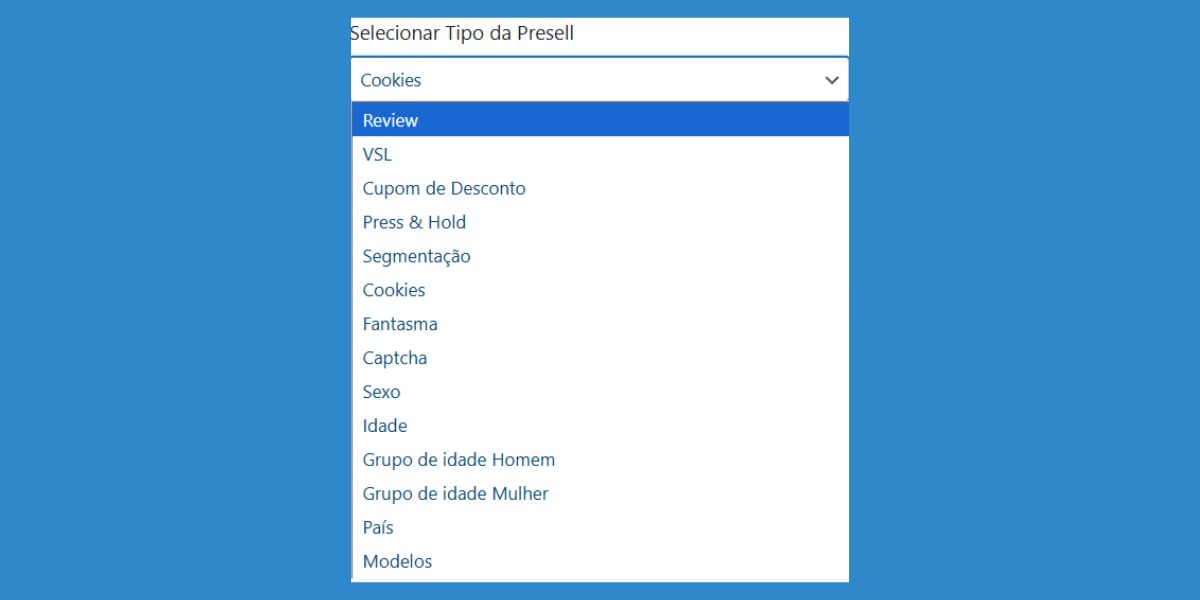 Além dos modelos que já estavam disponíveis no Super Presell 4.0 (presell fantasma, presell de cookies, presell de gênero, etc.), essa atualização oferece novos modelos de presell, cada um com um objetivo específico: