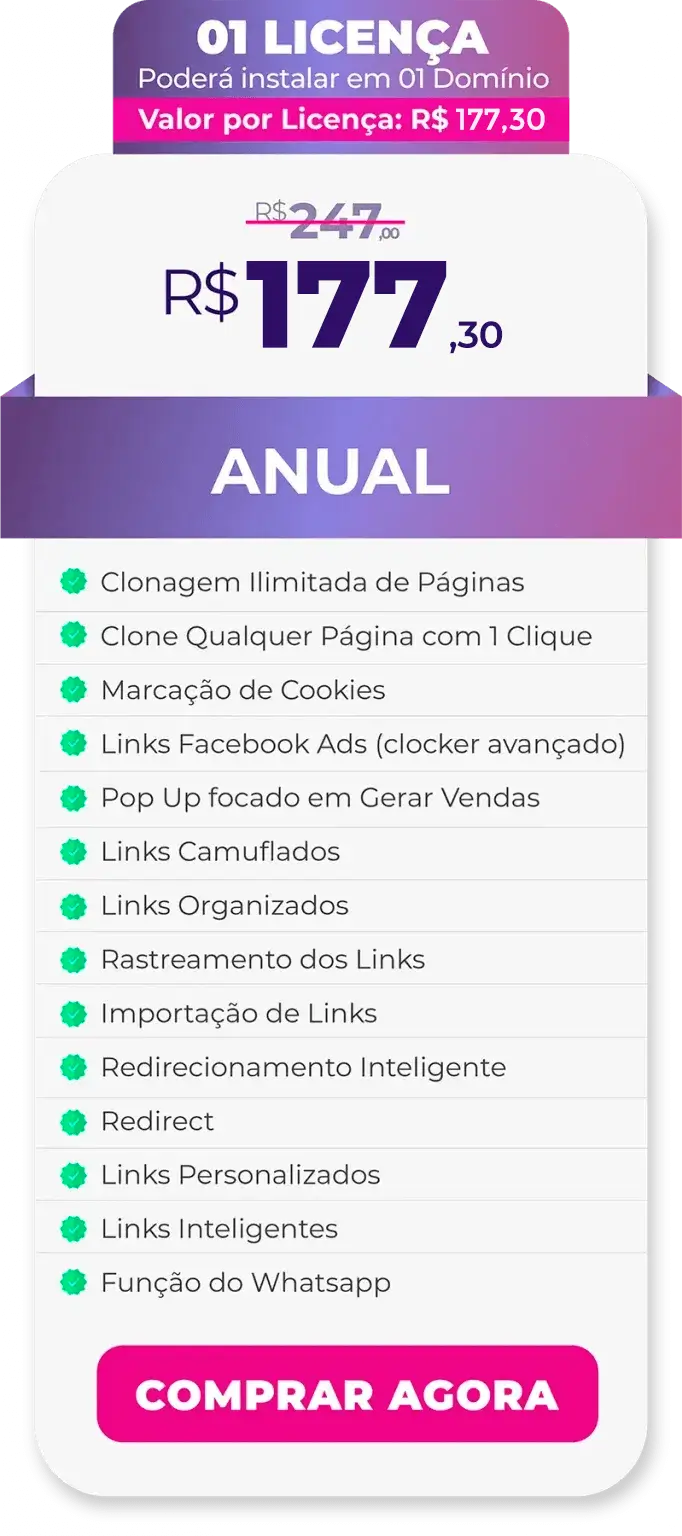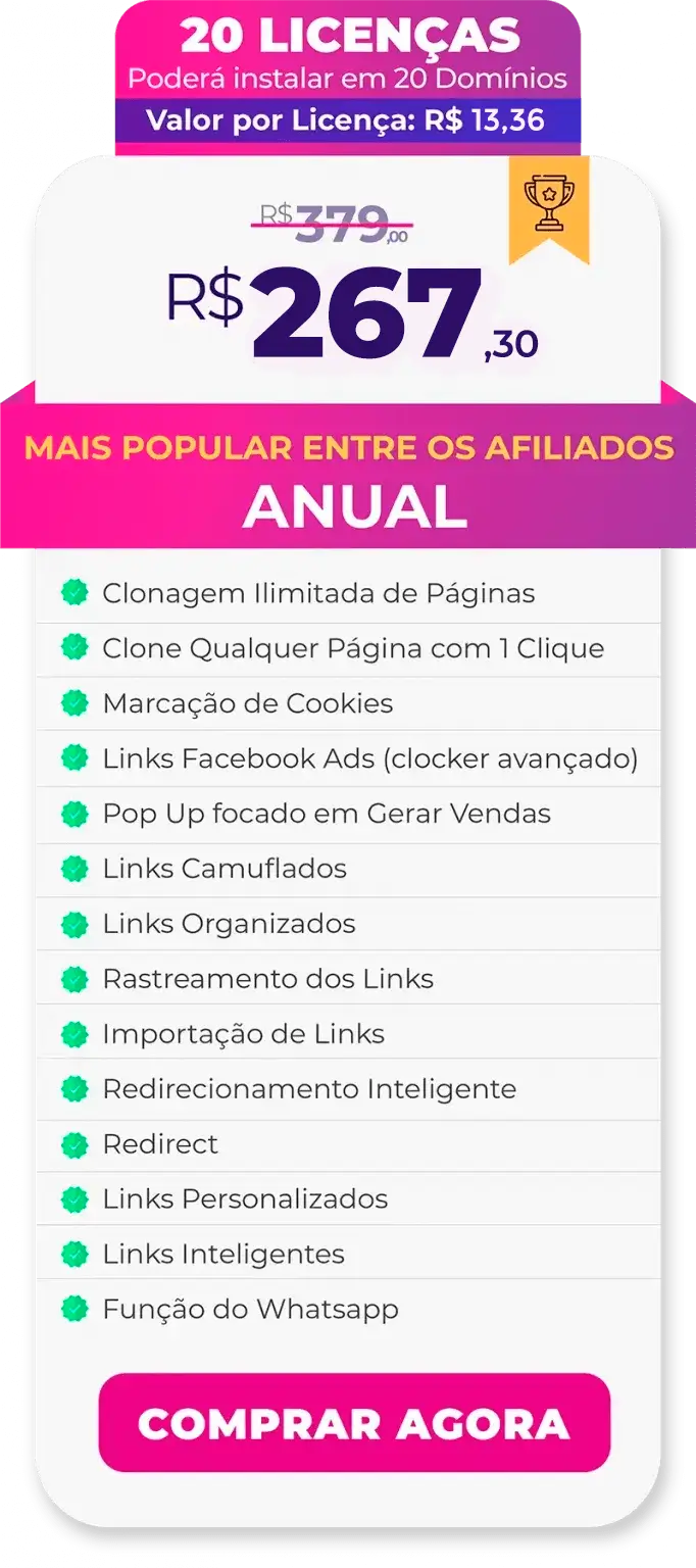 Com este poderoso recurso você pode marcar o cookie com o seu ID de afiliado, de qualquer produto, no seu domínio.