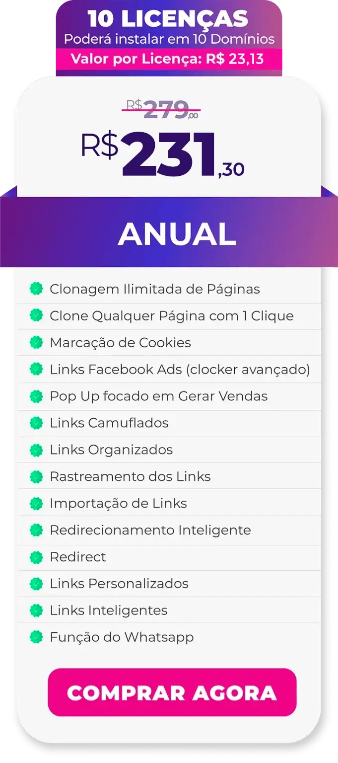 No Super Links você encontra as Melhores Funções que existe para Afiliados. VENDA MAIS, seja com Páginas Clonadas, Anúncios no Facebook Ads ou Artigos Em Blog. O Plugin Super Links foi pensado, estruturado e planejado para que você consiga Duplicar, Triplicar ou Quadruplicar as suas Vendas… Cada função foi cuidadosamente planejada para te ajudar a Aumentar as suas Vendas, é por isso que o Super Links é hoje uma Ferramenta Obrigatória para qualquer Afiliado que quer ter Resultados na Internet.