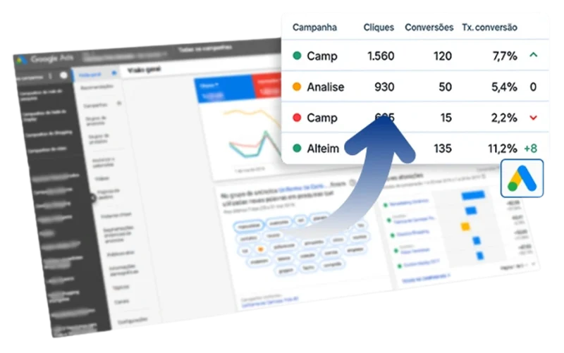 ✅ Analise por palavra-chave, anúncio ou origem do tráfego.